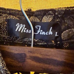 Women’s Black and Gold Sleeveless Lace Button-Front Shirt