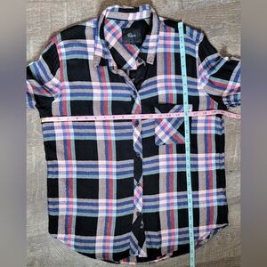 Rails Hunter Button-Down Plaid Top Women's M Black Melon Aqua Gold Relaxed Fit