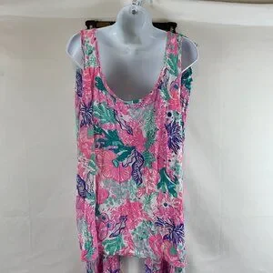 Lilly Pulitzer Pajama Set XXL Multi Seaside Carnivale Knit XXL Tank Pants Pink Teal Purple White