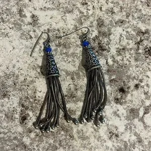 Blue and Silver Tone Fashion Earrings