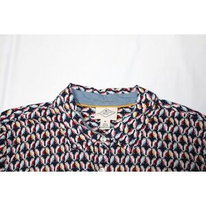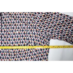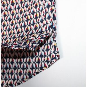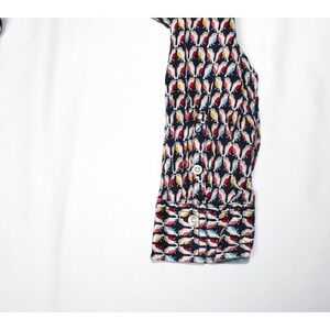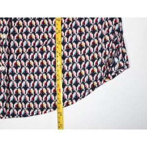 St. John Bay Womens Navy Multicolor Bird Pattern Button Long Sleeve Shirt Blouse