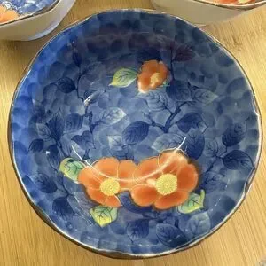 Vintage Japanese Porcelain Arita Juzan Gama Namasu Showa Peony Bowls Set Of 3