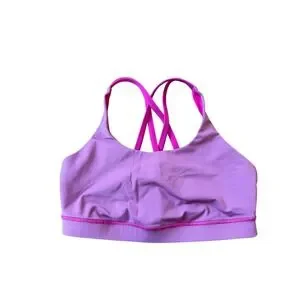 Lululemon Energy Bra Pink White Striped Strappy Back Sports Bra Size 10