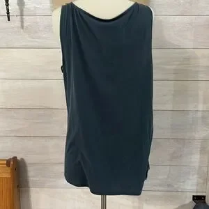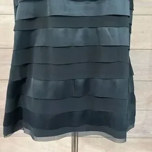 Chic black tank top with layered design. Perfect for versatile styling. Front flat under arm side to side 20". Length 28".