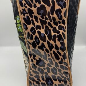 Consuela Ezzy Classic Tote. Interior zipper and slide pocket. Natural leather handles and trim. Quilted black exterior