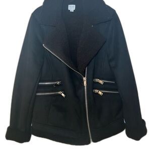 This is an Evereve Peyton Jensen Bancroft Sherpa Moto Jacket in black faux suede with faux sherpa lining. NWOT. Medium