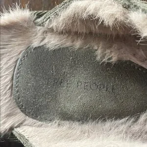 Free People Olive Green Suede Fringe Shearling Clog Mules
