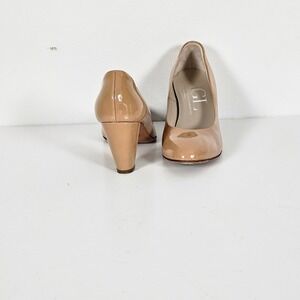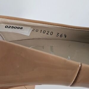 Polished patent leather construction defines these elegant Italian-made pumps, offering a sophisticated silhouette with a rounded toe and a sturdy block heel. The neutral tan hue ensures versatile pairing with professional or evening attire, while the smooth leather lining and cushioned insole provide lasting comfort. Finished with a durable leather sole featuring rubber grip inserts for added stability.