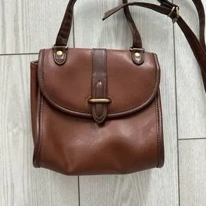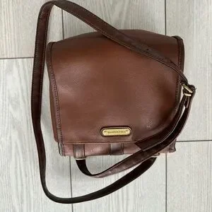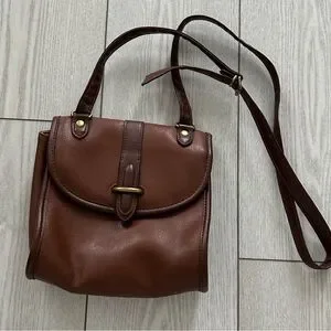 Stylish brown leather crossbody bag for everyday use. Features an adjustable strap and secure flap with a brass-tone buckle. Smooth pebbled leather offers a refined look. Ideal for hands-free carry and organized essentials. Brown color complements versatile outfits.