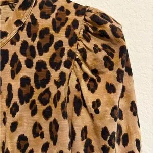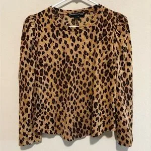 Veronica Beard Brown Leopard puff sleeved Long Sleeve Top