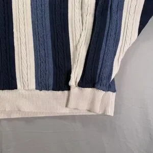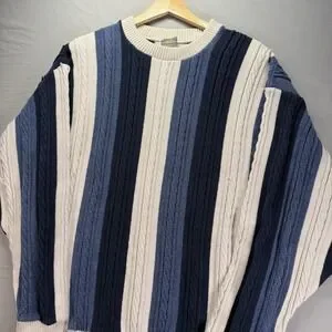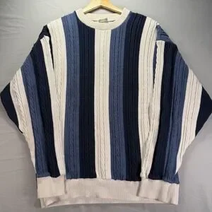 This Vintage Grandpa Sweater by Ozark Wilderness is a classic men's pullover in a timeless blue color with a cable-knit design. Made from cotton, this sweater features a crew neck and long sleeves, making it perfect for a casual and comfortable wear. The striped pattern adds a touch of retro style, and the regular fit ensures a comfortable and classic look. Ideal for activities like walking, golf, and hiking, this sweater is a unique and stylish addition to any wardrobe.