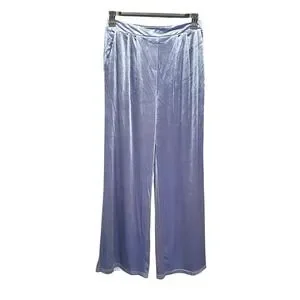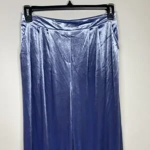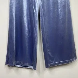Christian Lacroix Medium Velour Wide Leg Pleated Pants Elastic Waist Light Blue