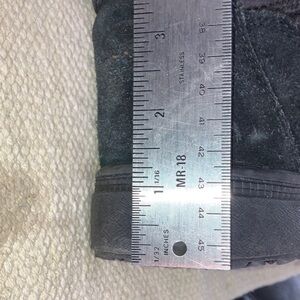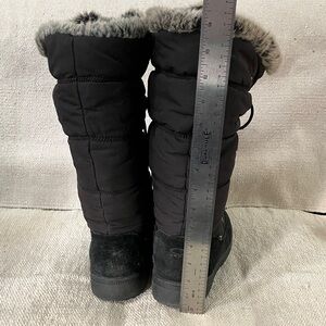 Good used condition may have a couple little spots of dirt. cozy for fur lined interior. He’ll is a slightly platformed at about 1 inch. Tassel strings can be wrapped around leg or simply tied in a bow. Sides can be turned down as seen in last photo if desired. They are insulated with T-max thermal insulation