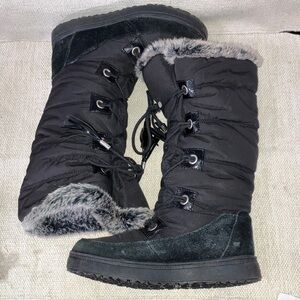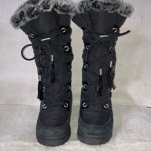 Cozy Black tall Winter Boots with faux fur and leather outer trim