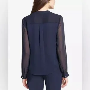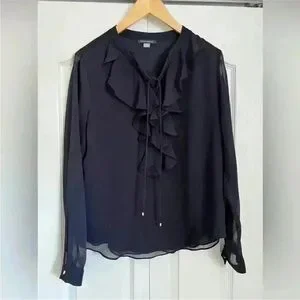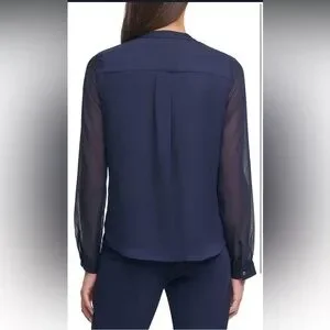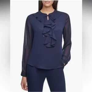 TOMMY HILFIGER Women's Classic Long Sleeve Ruffle Front Blouse Blouse - Midnight