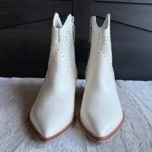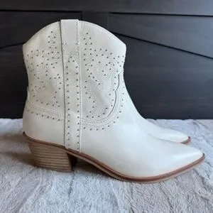 DOLCE VITA Solow Stud Western Boot In Off White Leather Size 9