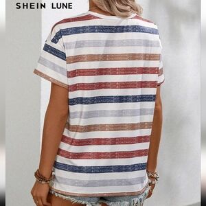 SHEIN Striped V-Neck Tee in Red, Blue, and Tan Size 12 XL