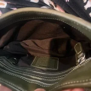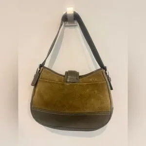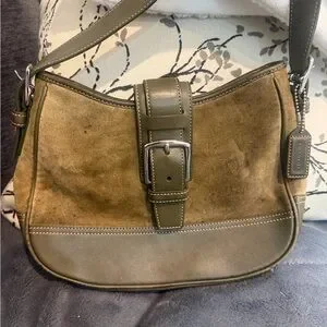 Coach Suede Shoulder Bag with Olive Leather Trim Silver Hardware