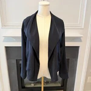 Keywords: open front jacket, drape blazer, lightweight blazer, navy cardigan jacket, max studio jacket, casual work blazer, layering jacket