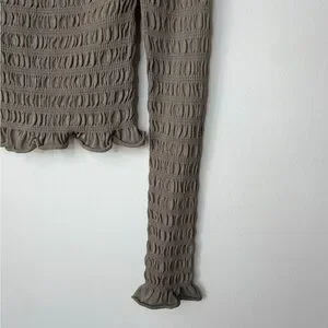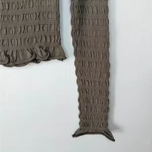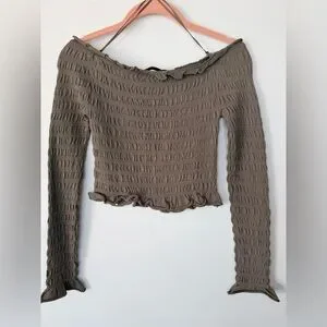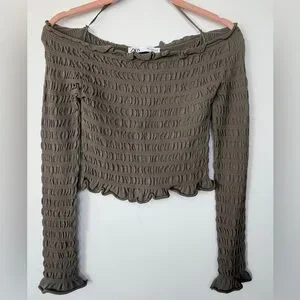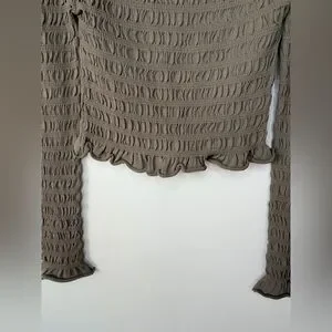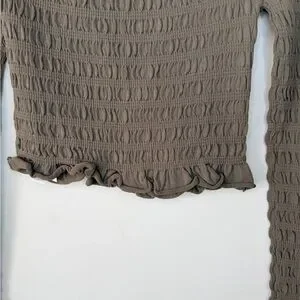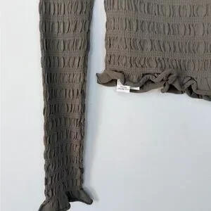 Zara Olive Green Smocked Crop Top – Long Sleeve – Size M