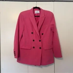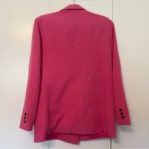 Stradivarius oversized double-breasted dad blazer in a vibrant hot pink shade featuring classic tailored details and a relaxed silhouette. A statement layering piece that works for both casual street style and dressier looks.