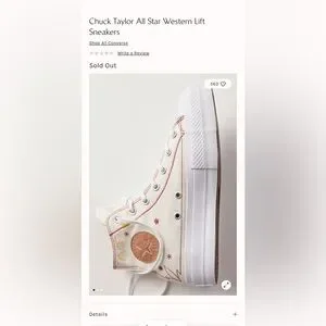 Converse Women's White High-Top Platform Western Sneaker, NWT!