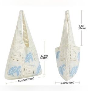 Crochet Tote Bag is perfect for your next adventure! This crochet icon tote bag is made of high-quality and lightweight material and easily opens to a large spacious main compartment, ready to store all your necessities. The crochet style and cute Turtle 🐢 print detail elevates any outfit with this unique design.