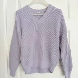 Aritzia TNA Light Lavender V-Neck Textured Knit Sweater 80% cotton