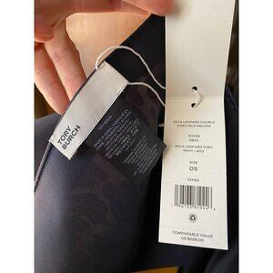 Tory Burch Reva Leopard Double Sided Silk Square Scarf Tory Navy Blue Reversible