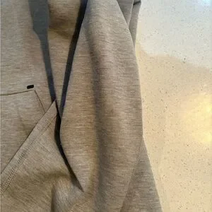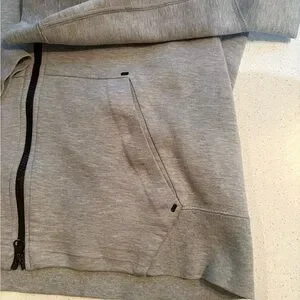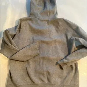 Stylish Nike hoodie with zip closure. Soft heather gray fabric. Features iconic logo.