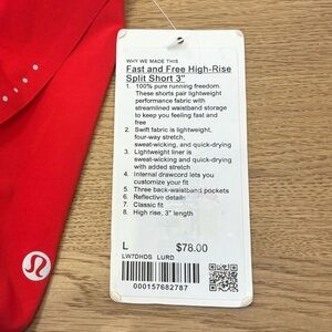 NWT Lululemon Fast And Free High Rise Split Shorts 3" Size Large In Lulu Red