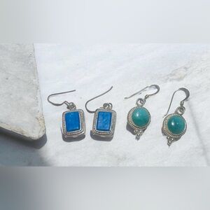 Both sets of these earrings contain naturals stones and are drop earrings attached to simple silver fishhook ear wires.