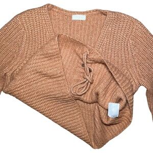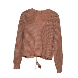 5/$25 Ruched Drawstring V-Neck Cropped Sweater Earth Tone Medium