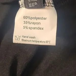 60% polyester, 35% rayon, and 5% spandex