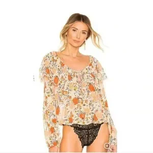 Free People Intimately Say It To Me Bodysuit Womens XSmall Orange Floral Boho