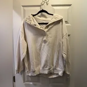 aerie Cream Half Button Pullover Sweatshirt