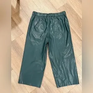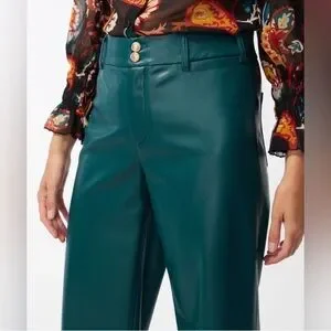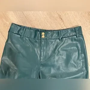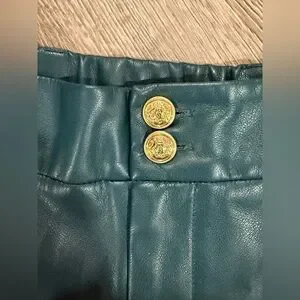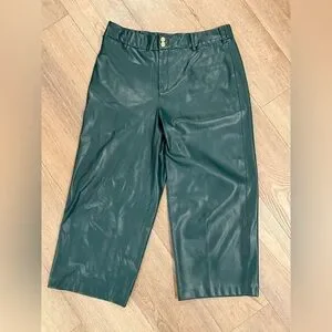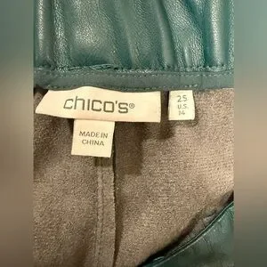 In excellent condition faux leather pants from Chicos. Teal pants with two gold buttons. Faux leather material, cropped wide leg fit. Chicos size 2.5 equal to women’s size 14. From smoke free home.