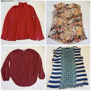 The product is a wholesale bulk lot of 10 women's blouses and dresses in size Small The blouses are in a multicolor pattern with a basic style and casual sleeve type. They are suitable for women and are categorized under women's clothing tops.