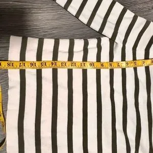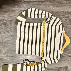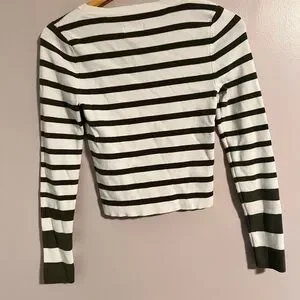 Stylish long sleeve top with olive and white stripes. Perfect for casual outings. Pair with jeans for a relaxed look.