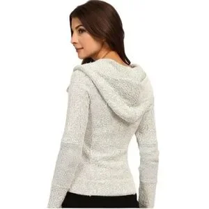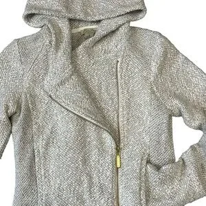 Lucky Brand Woven Asymmetrical Zip Hoodie. Gray White Size Small #1238