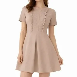 Beautiful ASOS fit & flare dress featuring a feminine and elegant design. The dress has a delicate lace panel with ruffle trim on the front bodice, giving it a romantic and sophisticated look. The short sleeves and flattering fit & flare silhouette make it perfect for many occasions.