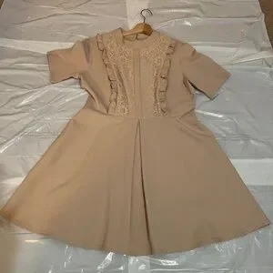 NWT ASOS Lace Panel Fit & Flare Dress Soft Taupe Beige/ Nude Beige Size US 12