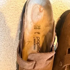 Papillio Brown Suede Mules with Gold Buckle