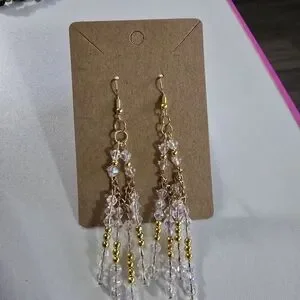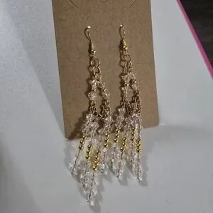 Add a touch of elegance with these chic gold and crystal beaded earrings. Perfect for any occasion.