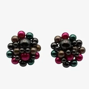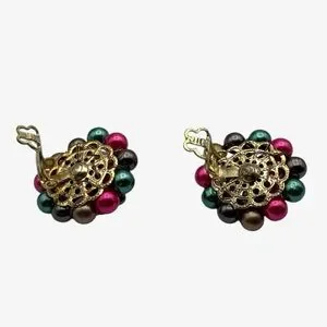 Matching cluster clip on earrings with gold tone metal backing.