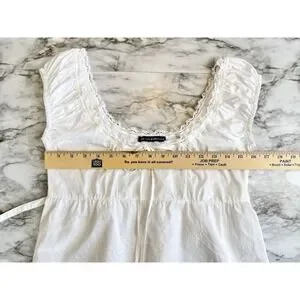 Brandy Melville Babydoll Top White 100% Cotton Ribbon Crochet Coquette Sz M/L?. No size tag, see photos for measurements.
