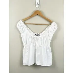 Brandy Melville Babydoll Top White 100% Cotton Ribbon Crochet Coquette Sz M/L?