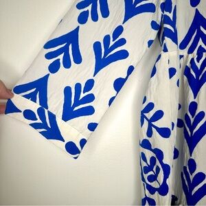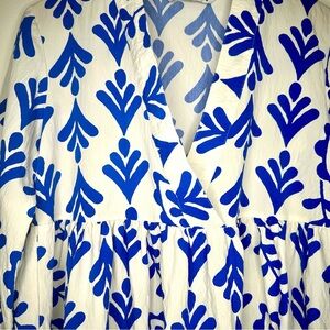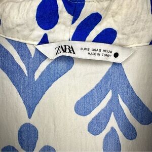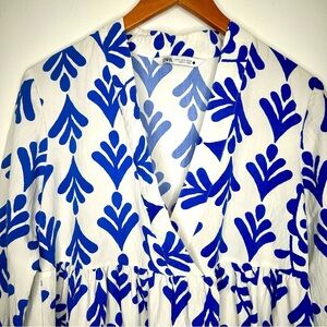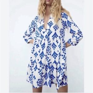 Zara Floral Blue and White V-Neck Mini Dress Size Small