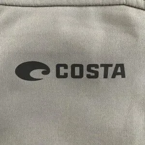 Color: Storm Gray solid body with contrasting black zipper and black Costa logo graphic at the left chest and back neck.