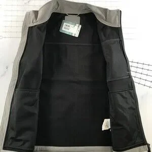 Material: Softshell polyester outer fabric with polyester lining and lightweight polyester insulation as listed on the interior care tag.